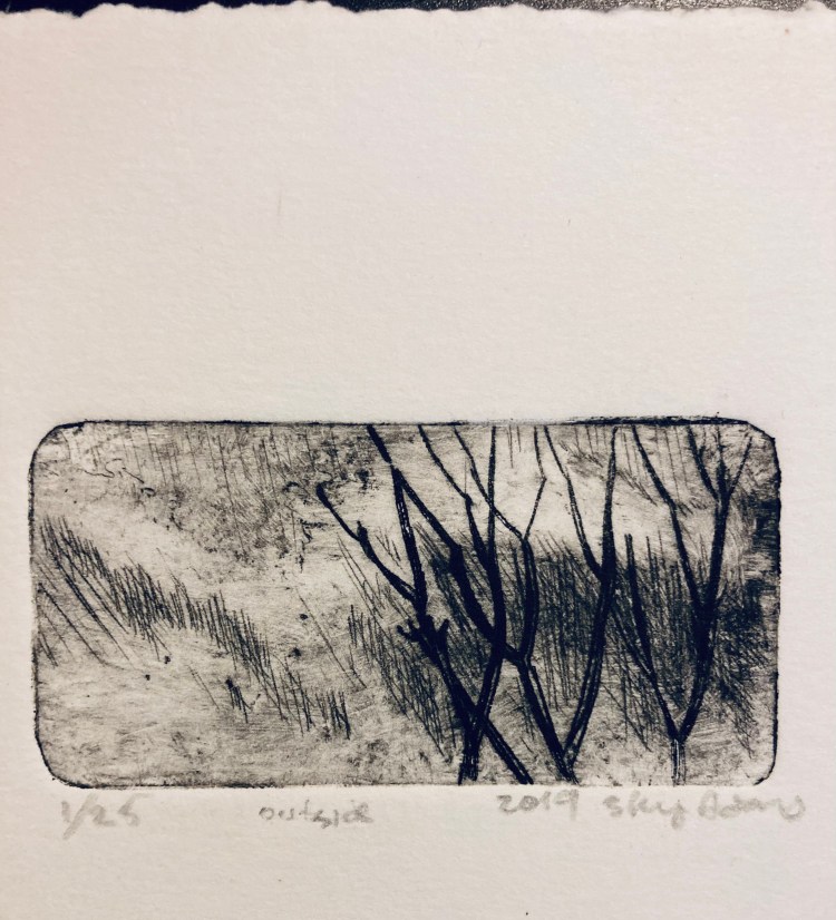 Outside 6×5 intaglio of the whole world as seen through a window