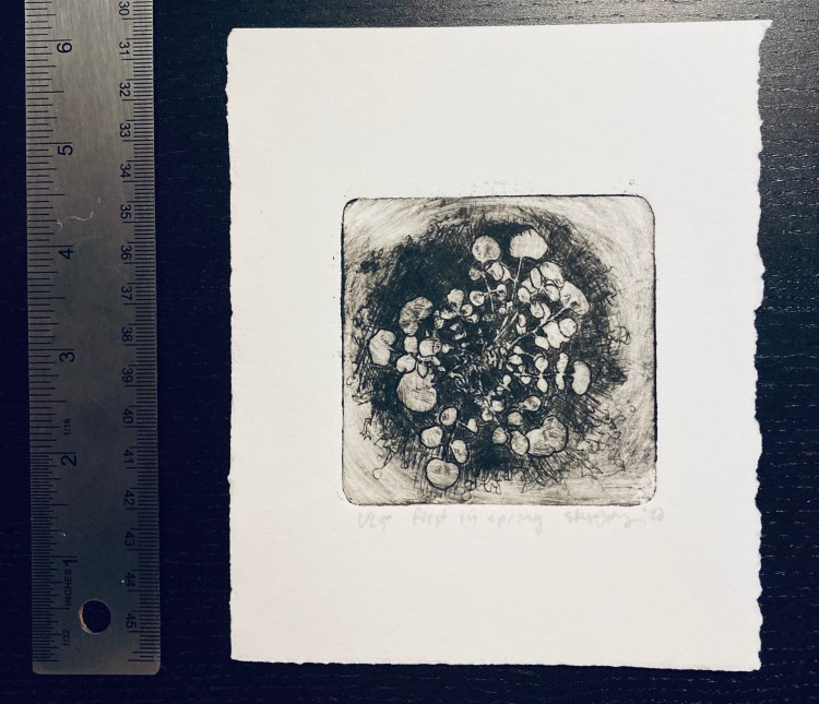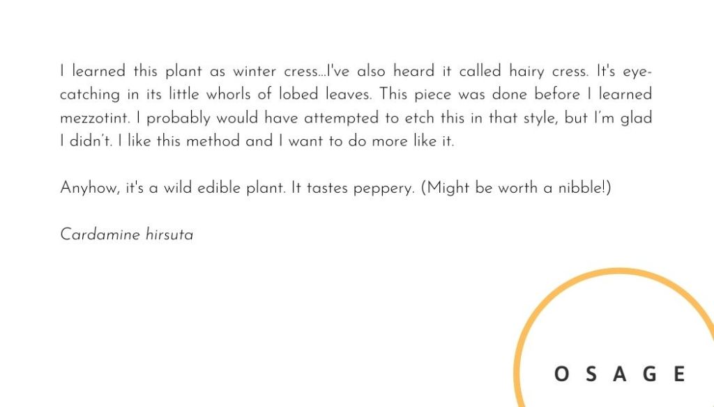 First in Spring 6×5 intaglio of winter cress …some call this hairy cress.(More info on cress here.)