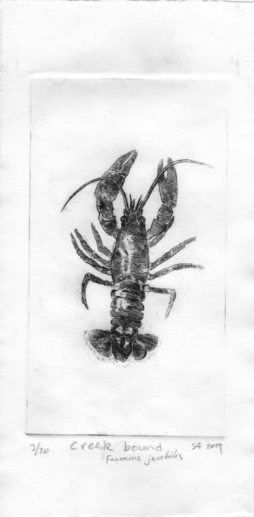Creek bound Faxonius juvenilis – Crawdad #1 (More information here.)