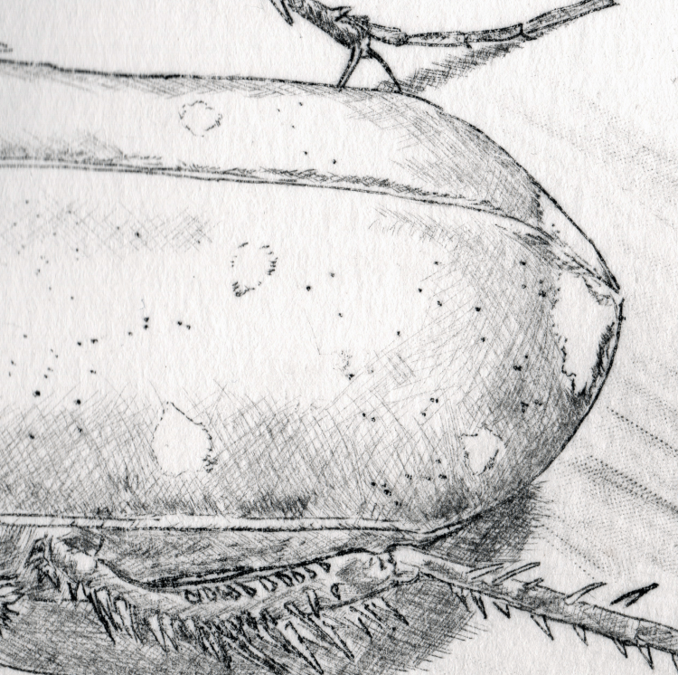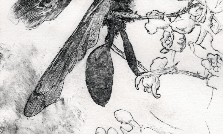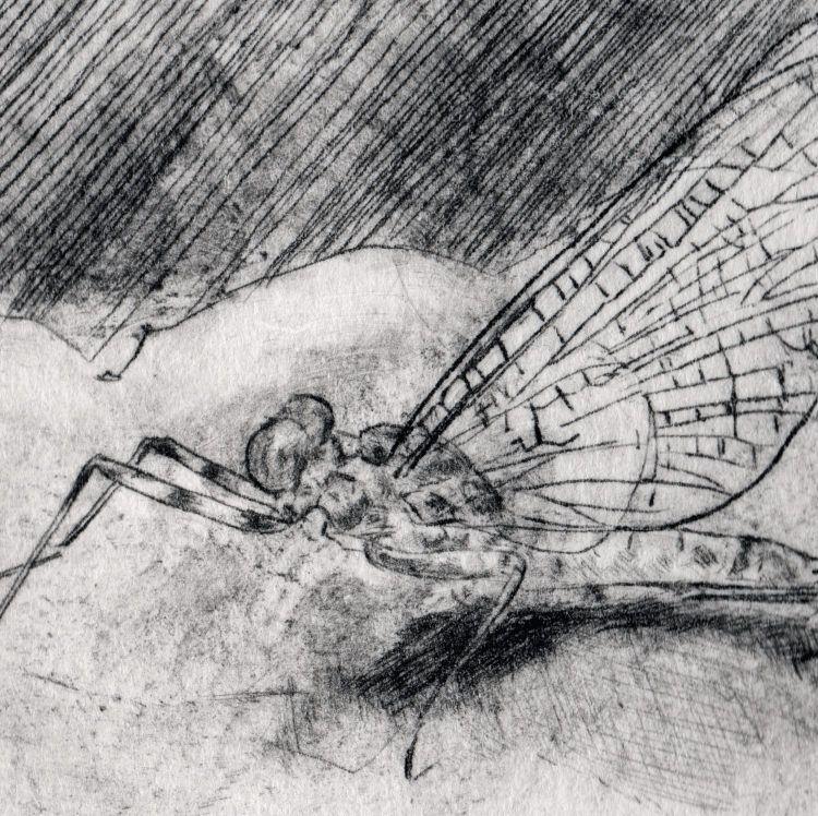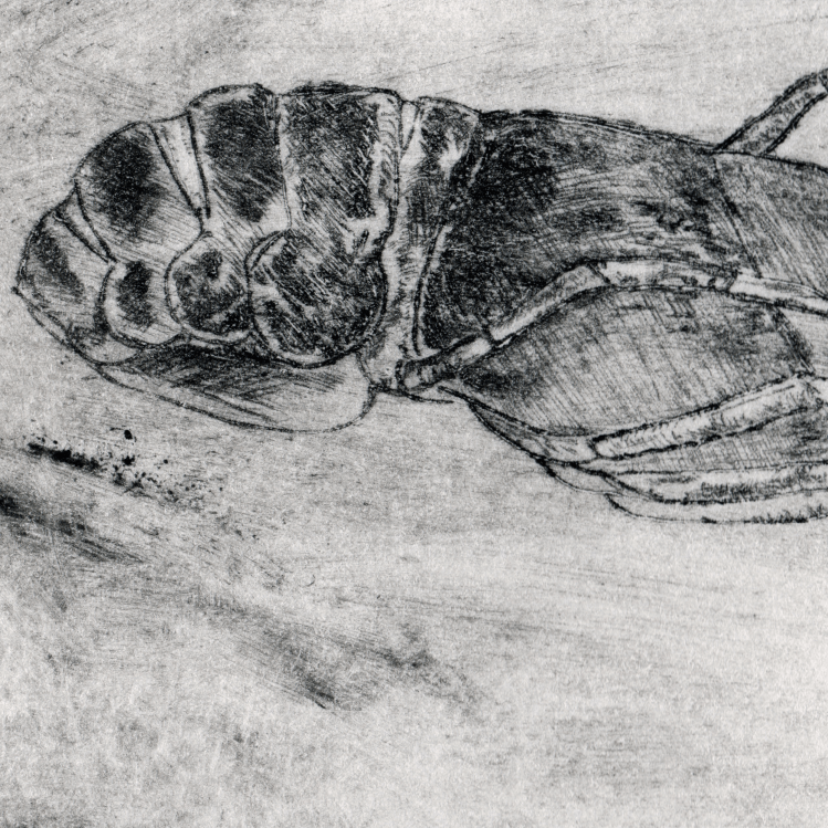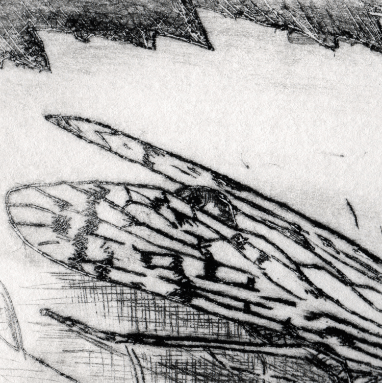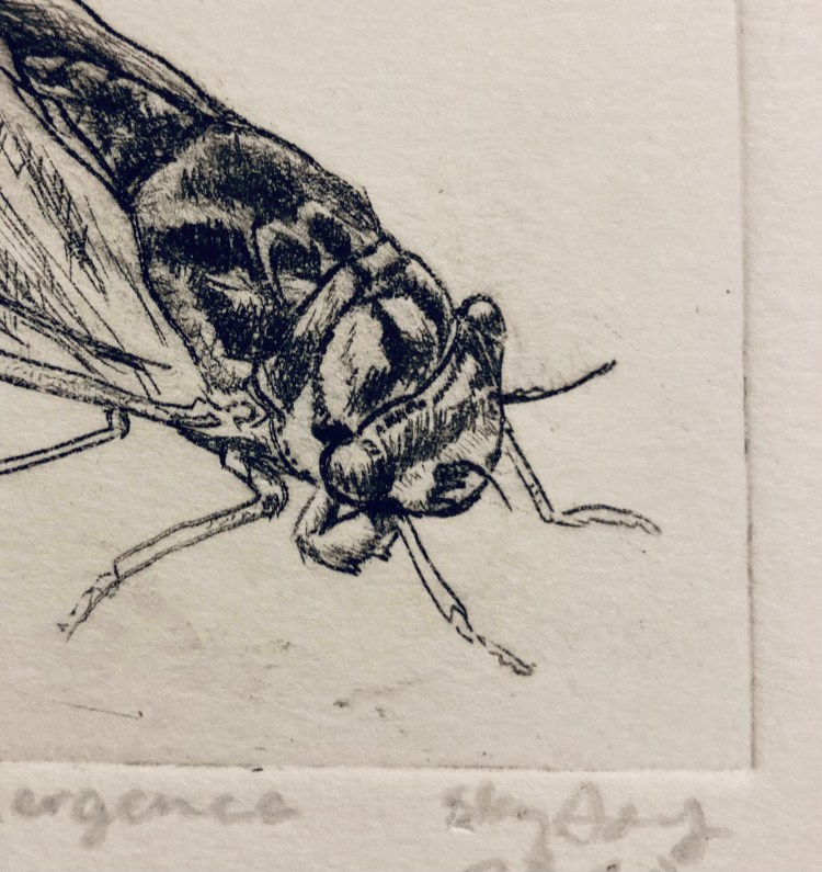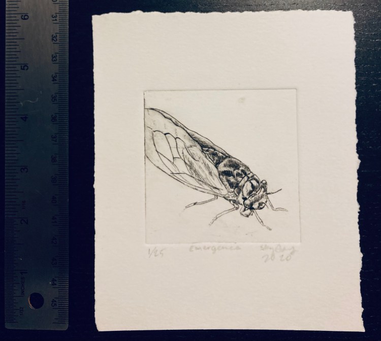 Emergence drypoint etching of a dogday cicada (cicada #1) (More info here.)