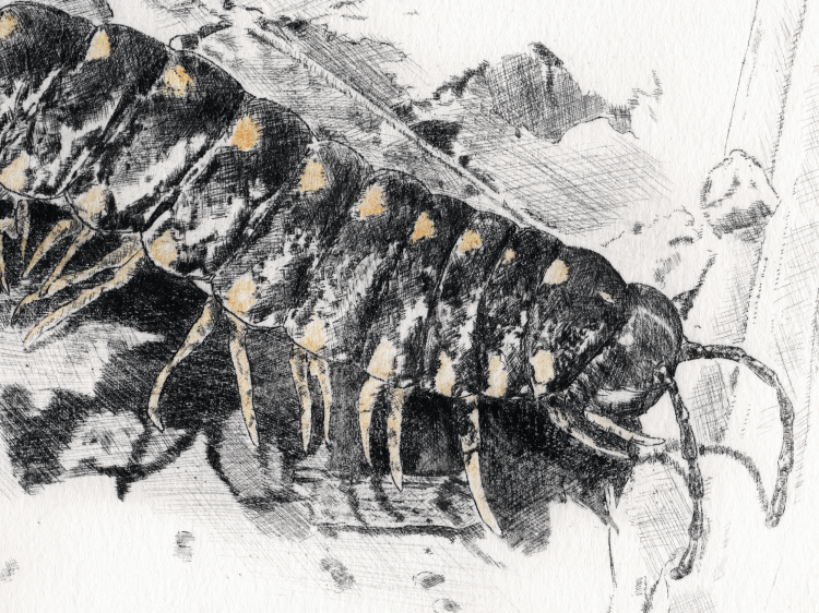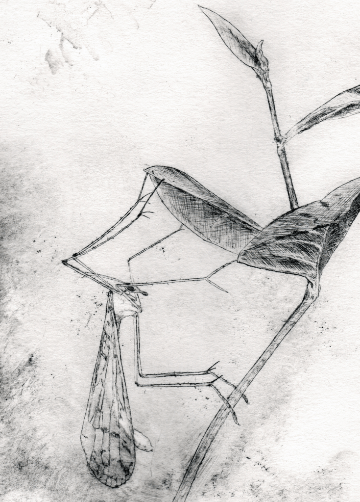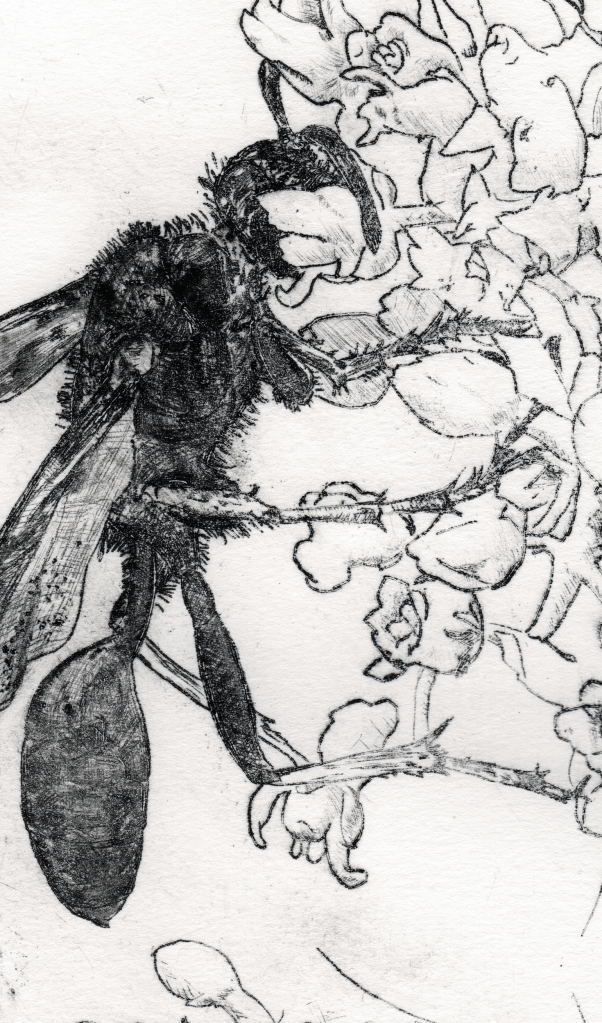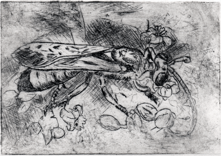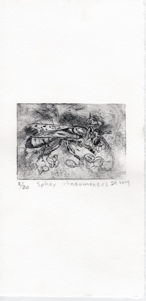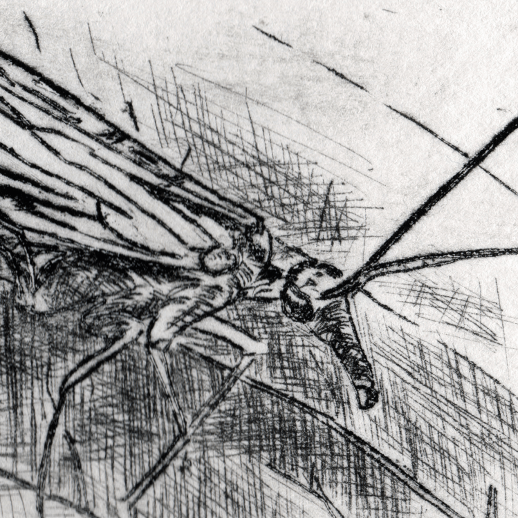 Emergence drypoint etching of a dogday cicada (cicada #1) (More info here.)
