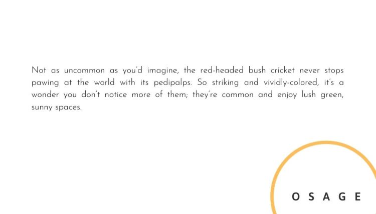Handsome lady – Phyllopalpus pulchelus female handsome trig bush cricket (Learn more here.)