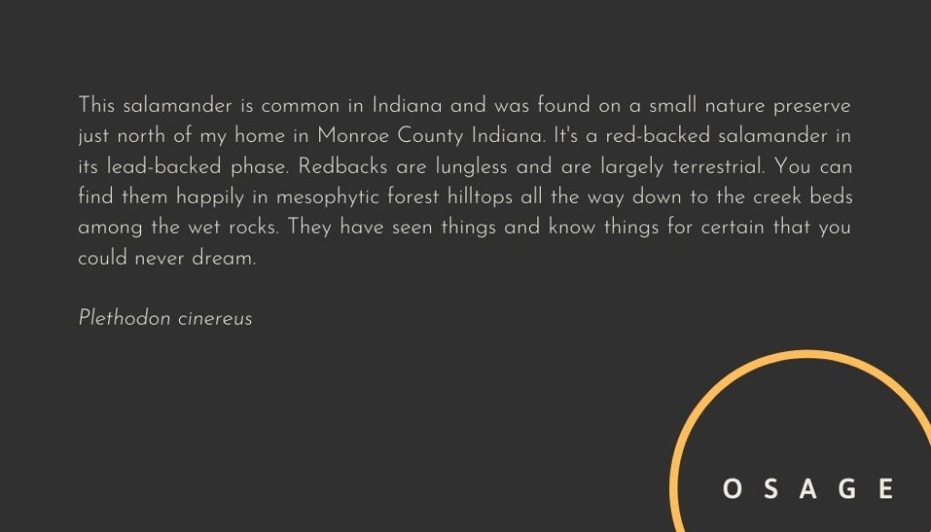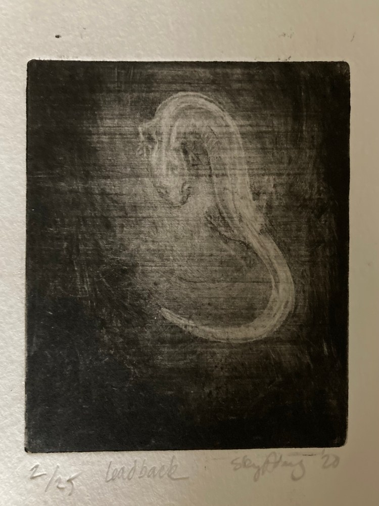 Salamander 6 1/2 x 4 mezzotint plate of a red backed salamander in its lead backed phase. (Learn more here.)