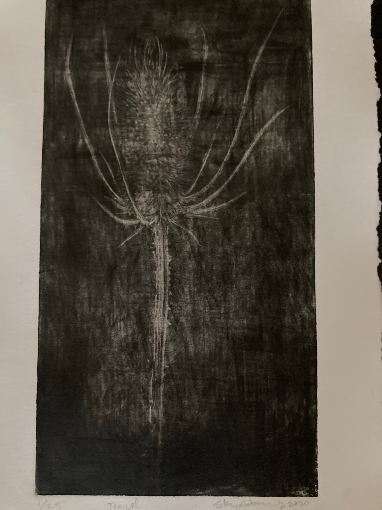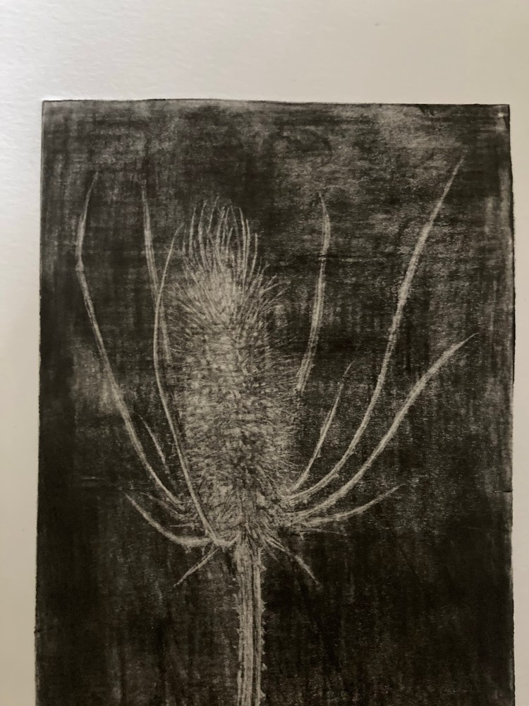 Teasel 14×7 mezzotint of a teasel flowerhead. (Click here to learn about teasel.)